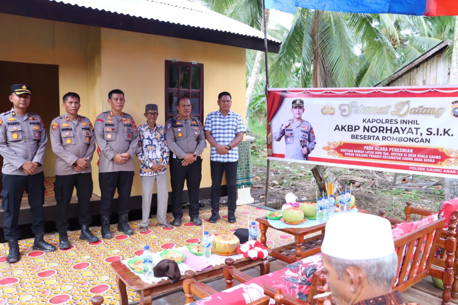 Kapolres Inhil Berikan Satu Unit Rumah Layak Huni Kepada Warga Dusun Penagih Desa Kuala Gaung