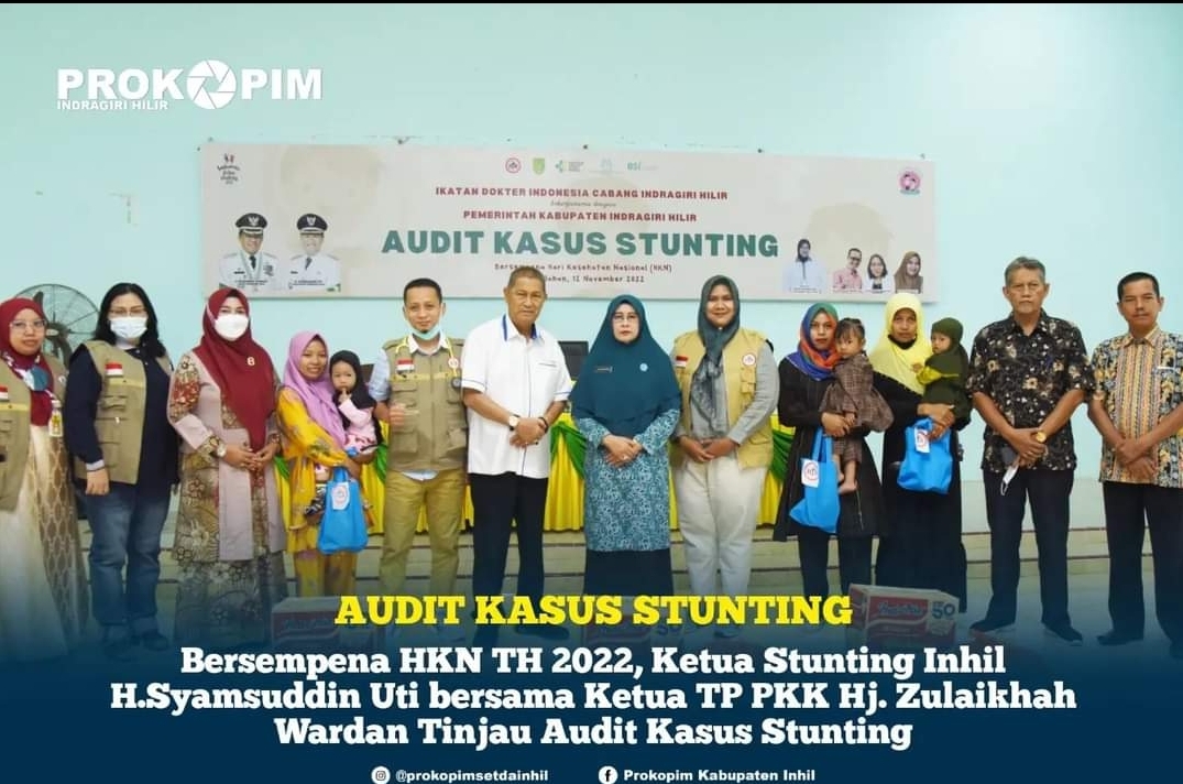 Audit Kasus Stunting yang dipusatkan di Gedung Wanita Sungai Beringin ditaja Ikatan Dokter Indonesia (IDI) Cabang Indragiri Hilir bersempena Hari Kesehatan Nasional (HKN) 2022 turut juga dihadiri Ketua TP PKK Hj. Zulaikhah Wardan yang juga Ketua Gerakan Satu Hati (GSH).