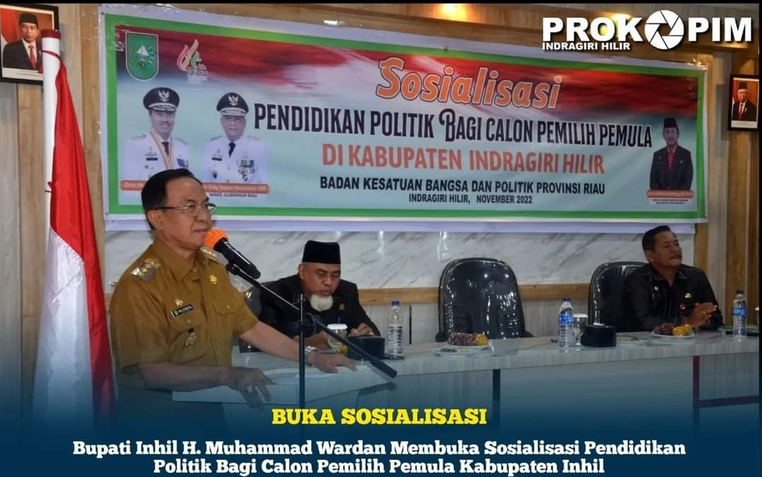 KILASRIAU.com - Bupati Indragiri Hilir H. M. Wardan membuka Sosialisasi Pendidikan Politik Bagi Calon Pemilih Pemula di Kabupaten Inhil yang dilaksanakan di aula salah satu hotel di kota Tembilahan, Selasa 15 November 2022.
