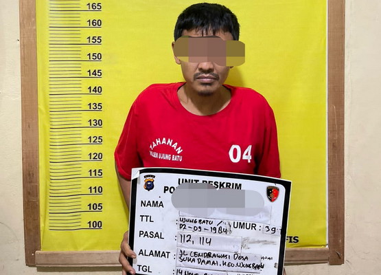 Pada penggerebekan yang dilakukan Senin (14/11/2022) sekitar pukul 15.00 WIB sore itu, unit Reskrim Polsek Ujung Batu mengamankan seorang pria berinisial AMS (38), kemudian saat penggeledahan polisi menemukan barang bukti narkotika berupa 8 bungkus pakai sabu-sabu dengan berat kotor 7,47 gram 11 plastik kosong satu kaca Pyrex 5 bungkus ganja kering dengan berat kotor 24,26 gram uang tunai Rp 2.420.000,-