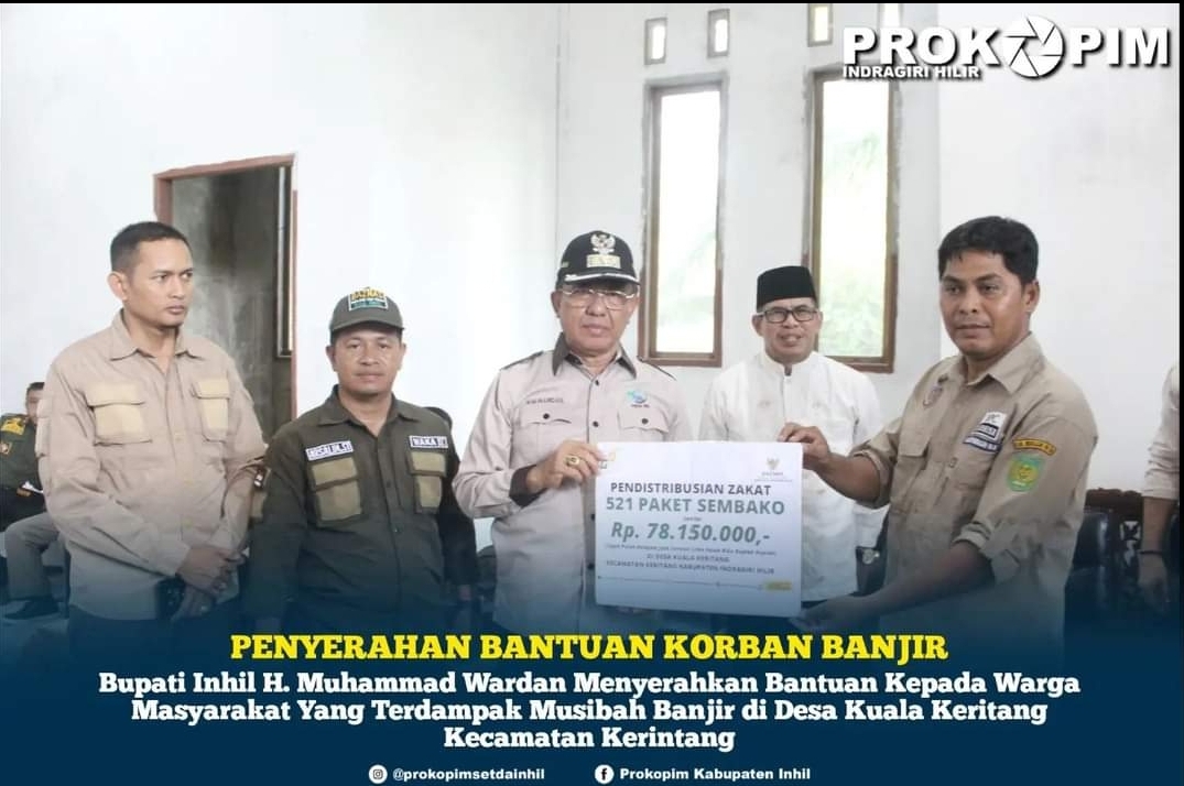 Kilasriau.com - Bertempat di Kantor Desa Kuala Keritang, Bupati Indragiri Hilir (Inhil) Drs. H. Muhammad Wardan, MP menyerahkan bantuan kepada korban banjir yang terjadi di Desa Kuala Keritang Kecamatan Keritang, Jum'at (18/11/2022).