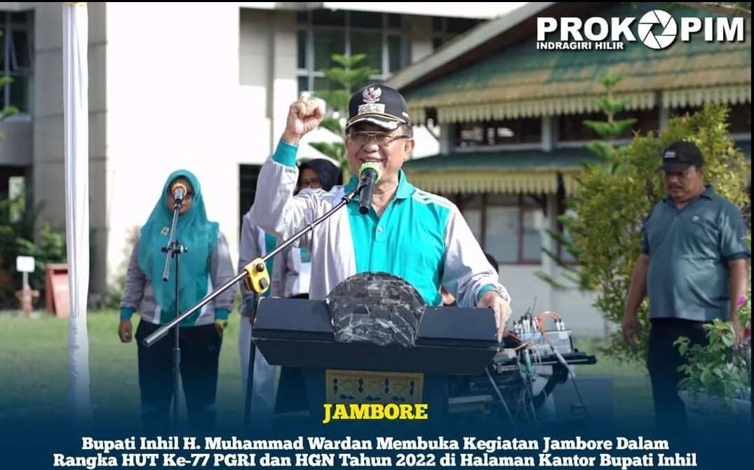 KILASRIAU.com - Persatuan Guru Republik Indonesia (PGRI) Kabupaten Indragiri Hilir (Inhil) menggelar kegiatan Jambore Dalam Rangka HUT Ke-77 PGRI dan Hari Guru Nasional (HGN) Tahun 2022 Kabupaten Inhil, Minggu (20/19/22)