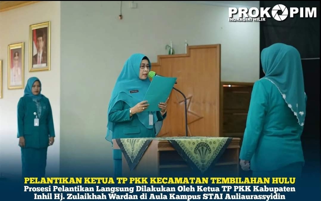 Disaksikan unsur Forkopincam, Camat, Lurah dan Kepala Desa Se-Kec. Tembilahan Hulu, KUA Kec. Tembilahan Hulu, Muslimat NU, TP PKK Kabupaten Indragiri Hilir, TP PKK Se-Kec. Tembilahan Hulu, serta tamu undangan. Prosesi pelantikan langsung dilakukan oleh Ketua TP PKK Kab. Inhil Hj. Zulaikhah Wardan dengan diawali pembacaan naskah pelantikan dan penandatanganan naskah pelantikan.