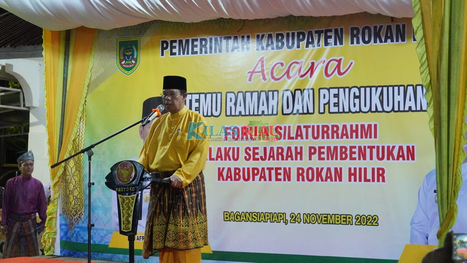 Kilasriau.com-- Bupati Rokan Hilir Afrizal sintong secara resmi mengukuhkan pengurus Forum Silaturahmi Pelaku Sejarah Pembentukan Kabupaten Rokan Hilir (FSPSPKR) masa bakti 2022-2027, Kamis (24/11/2022) malam pada acara temu ramah dengan pendiri Rohil yang digelar di halaman mess Pemda Bagansiapiapi.