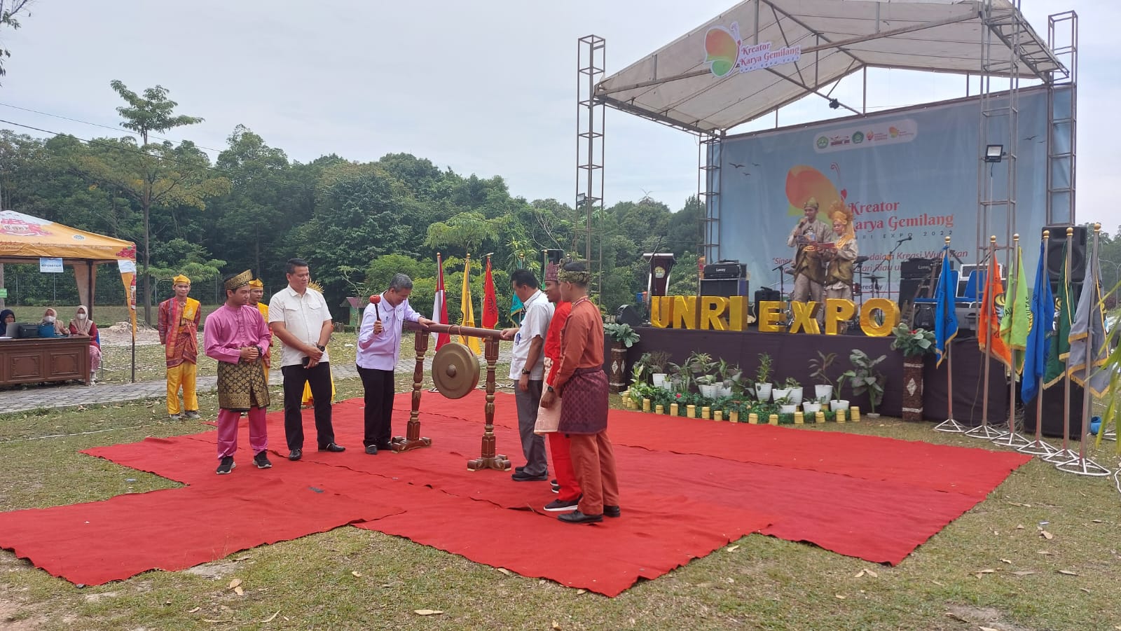 Usai menyampaikan kata sambutan, rangkaian kegiatan dalam acara pembukaan Unri Expo ditutup dengan pemukukan gong sebagai tanda bahwa pergelaran kegiatan Unri Expo telah resmi dibuka oleh Plt. Kepala Dinas Pendidikan Provinsi Riau, Muhammad Job Kurniawan, AP., M.Si bersama Rektor Universitas Riau Prof. Dr. Ir. Aras Mulyadi, DEA dan juga Presiden Mahasiswa Universitas Riau Kaharuddin HSN DM.