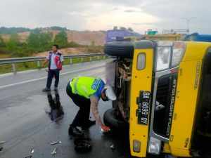Truk Terbalik di Tol Permai Ditabrak Terios