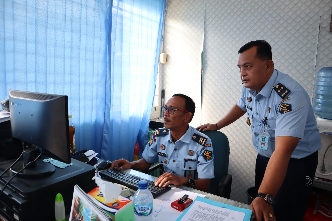 KILASRIAU.COM – Menindaklanjuti Perintah Lisan Kepala Lembaga Pemasyarakatan Kelas IIA Tembilahan, Kepala Subbagian Tata Usaha Jon Kenedi melakukan ‘Monitoring’ Kedisiplinan Pengisian Jurnal Harian Pegawai, tampak Kasubbag TU menghampiri setiap Pegawai pada masing-masing ruangan sembari memberikan nasihat dan petunjuk, Selasa (06/12/22).