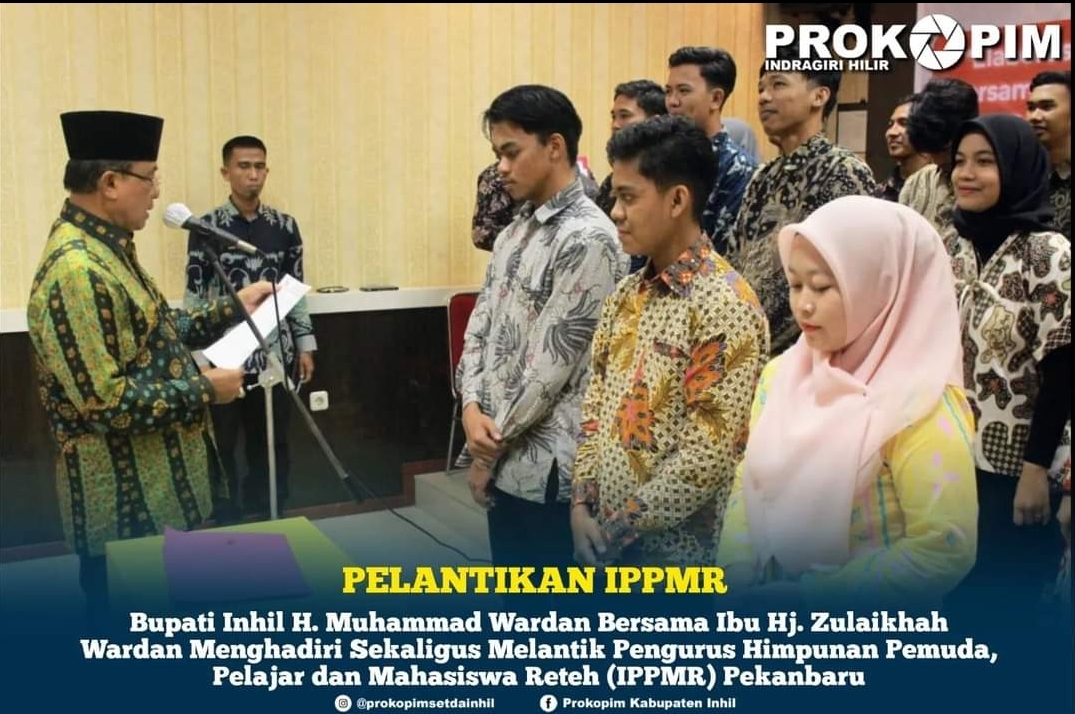 Bupati Inhil HM Wardan mengucapkan selamat kepada pengurus IPPMR Pekanbaru yang baru saja dilantik semoga anak-anak yang kuliah di Pekanbaru dapat menjadi mahasiswa yang berprestasi serta dibanggakan oleh orangtuanya.