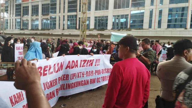 Puluhan massa yang bergabung dengan sejumlah lapisan masyarakat menuntut agar THM yang baru beroperasi ini ditutup dalam waktu 2x24 jam atau dua hari.