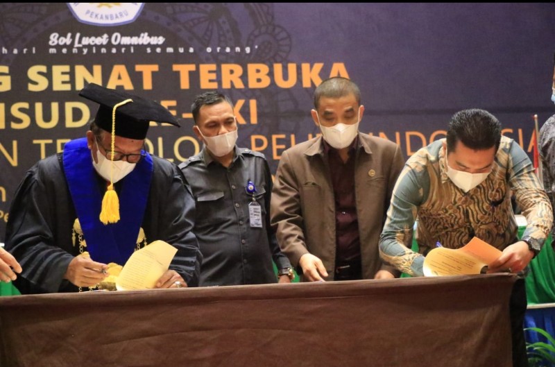 PEKANBARU - Plt Bupati Kuantan Singingi, Drs. H Suhardiman Amby, Ak.MM di wakili Plt Kepala BKPP, Hendri Juprison menghadiri Wisuda ke XXI sekaligus Penandatanganan MoU bersama Institut Bisnis Dan Teknologi Pelita Indonesia, Rabu (14/12/2022) di Gedung SKA CoEx Pekanbaru.