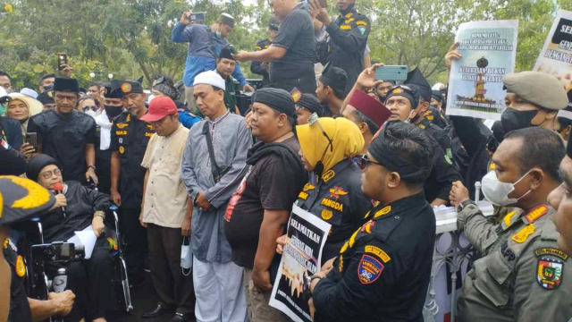 Kilsriau.com, - Forum Masyarakat Pekanbaru Anti Maksiat (Formapam) menggelar aksi protes masih beroperasinya Tempat Hiburan Malam (THM) Joker Poker Pub & KTV di Jalan Soebrantas, Kecamatan Bina Widya, Kota Pekanbaru. Puluhan massa menggelar aksi di depan Mal Pelayanan Publik (MPP) Kota Pekanbaru, Jalan Jenderal Sudirman, Jumat (16/12/2022) siang.