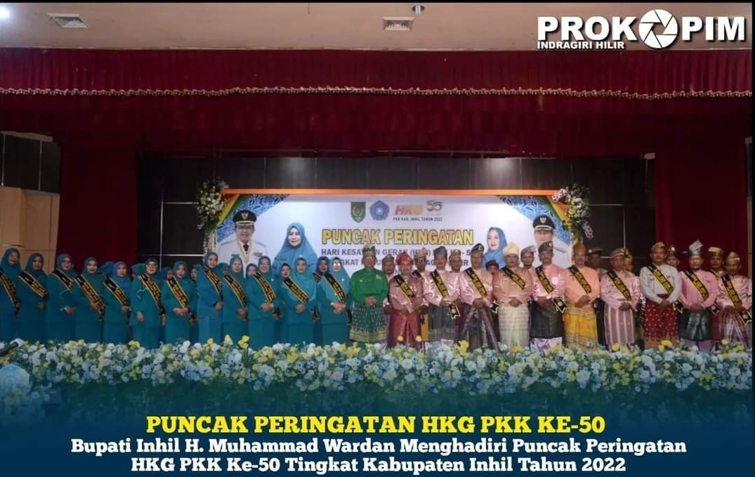 Mengangkat tema "Lima Puluh Tahun Gerakan PKK Berbakti Untuk Bangsa, Berbagi Untuk Sesama", puncak peringatan HKG PKK ke - 50 dihadiri unsur Forkopimda, Kepala OPD dan Camat juga organisasi wanita di lingkungan Pemkab. Inhil serta undangan lainnya.
