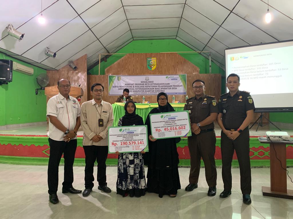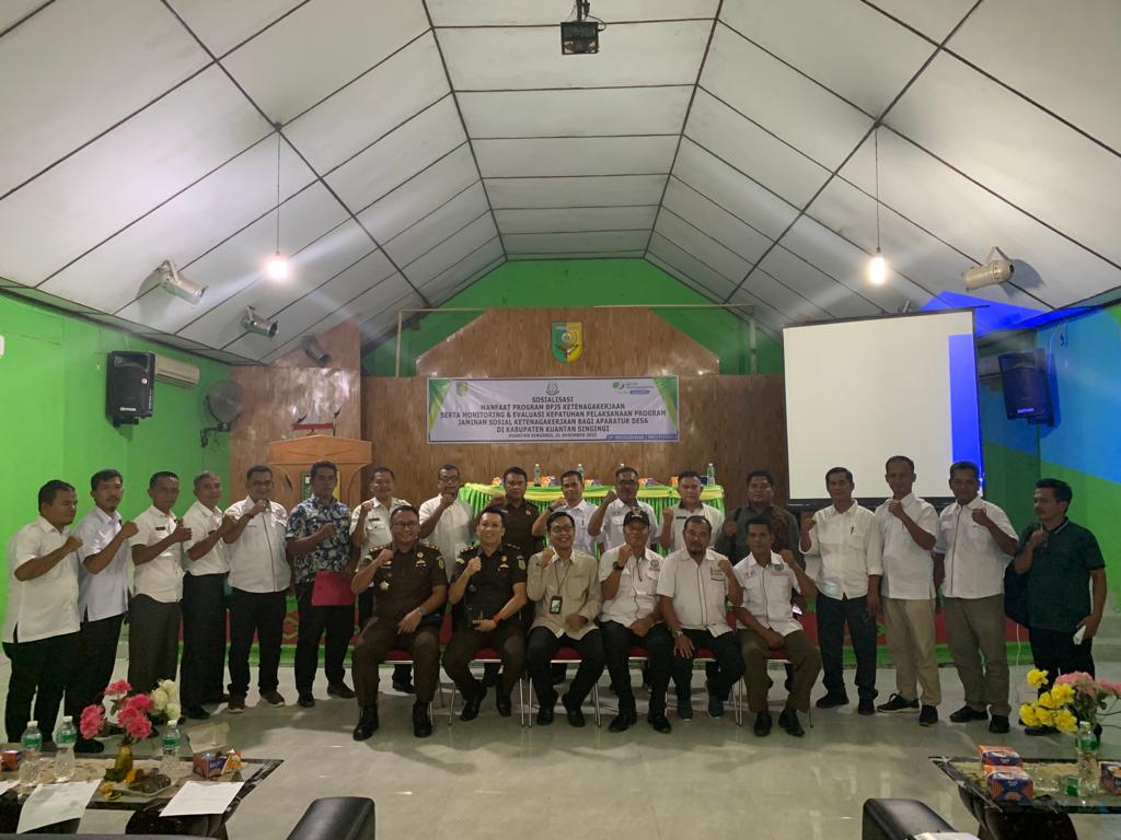 Melihat pentingnya perlindungan jaminan sosial ketenagakerjaan bagi Tenaga Kerja formal maupun informal di Kabupaten Kuantan Singingi, BPJAMSOSTEK sudah melakukan koordinasi dengan Forum Kepatuhan yakni Kejaksaan Negeri Kuantan Singingi, Pemerintah Kabupaten Kuantan Singingi dan Forum Kepala Desa Kuantan Singingi untuk optimalisasi pelaksanaan jaminan sosial ketenagakerjaan bagi seluruh Aparatur Desa melalui MoU, Instruksi Bupati, dan juga Edaran.