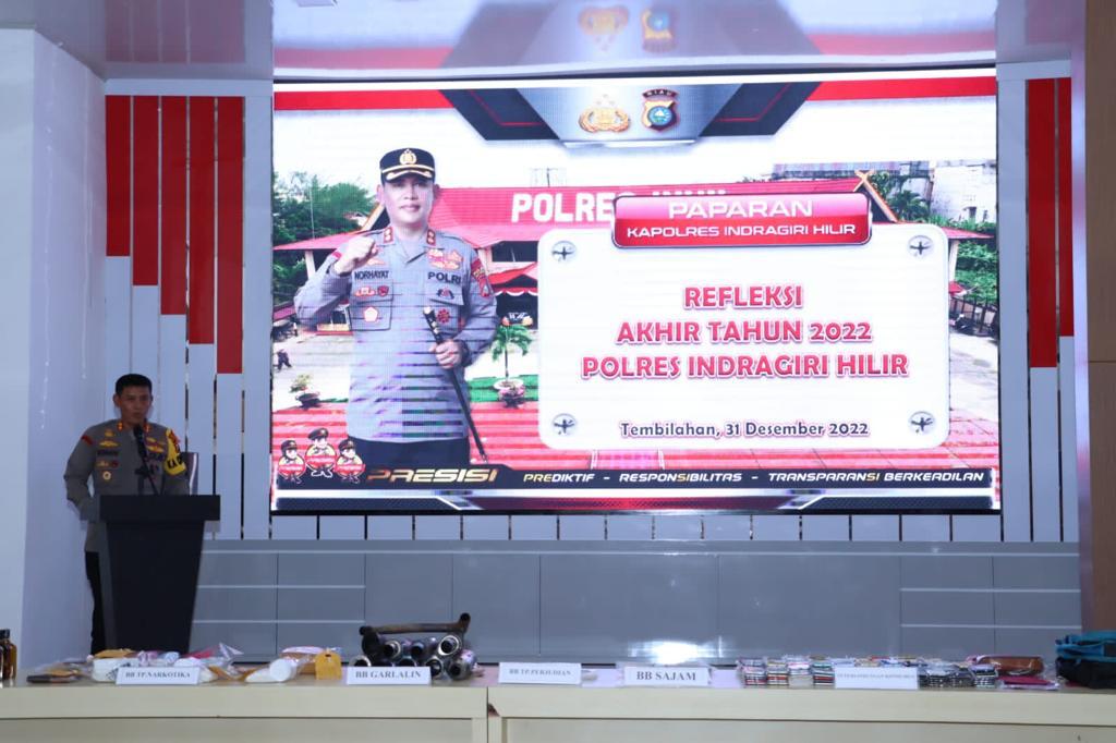 Kapolres Inhil AKBP Norhayat SIK menyatakan bahwa kegiatan refleksi akhir tahun yang dilakasanakan bertujuan untuk menyampaikan informasi dan kegiatan Polres Inhil dalam bidang pembinaan maupun operasional kepada masyarakat Inhil.