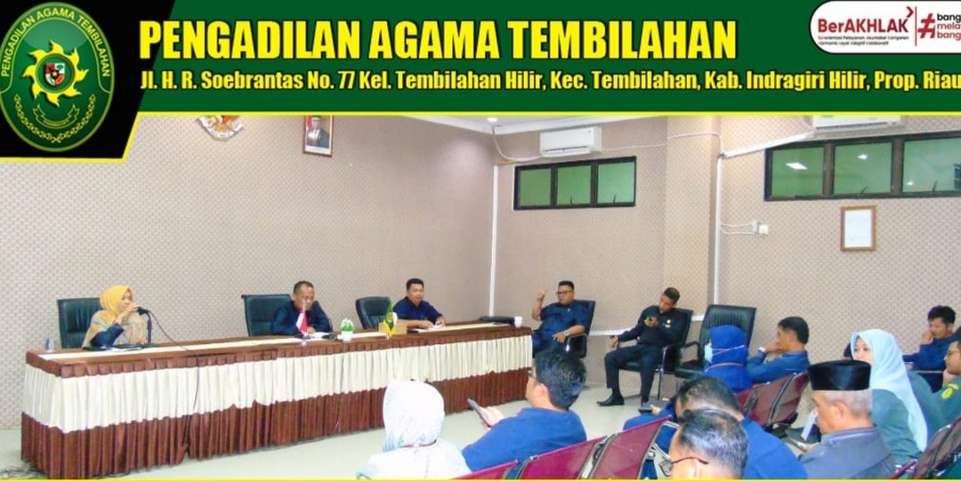 Ketua Pengadilan Agama Tembilahan Amiramza, S.HI didampingi Wakil Ketua dan sekretaris Pengadilan Agama Tembilahan pada pelaksanaan rapat tersebut membahas terkait montoring dari penyelesaian laporan kegiatan satuan kerja Pengadilan Agama Tembilahan tahun 2022 pada Sistem Akuntabilitas Kinerja Instansi Pemerintah (SAKIP) dan Laporan Kinerja Instansi Pemerintah (LAKIP) serta pembahasan teknis penyelesaian penanganan perkara Pengadilan Agama Tembilahan untuk tahun 2023 ini.