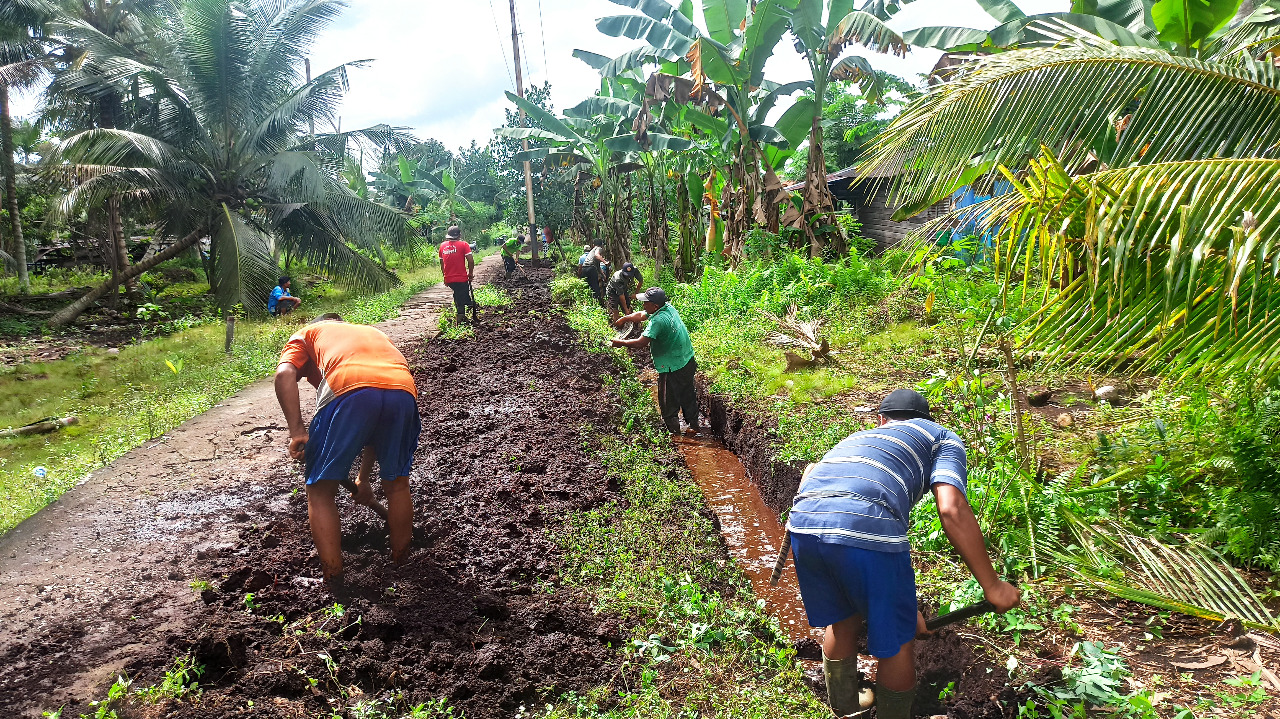 Pemdes Baung Rejo Jaya Bersama Masyarakat Laksanakan PKT Galian Parit dan Timbunan