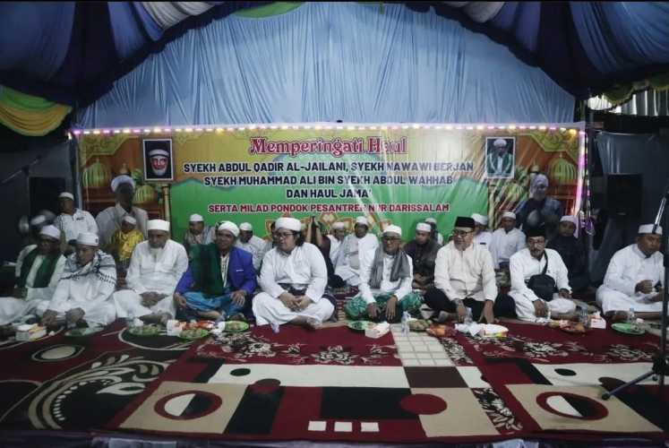 "Atas nama pemerintah kabupaten Indragiri Hilir saya menyambut baik dan memberikan apresiasi atas di adakannya kegiatan Haul Syekh Abdul Qodir Al-Jailani, Syekh Nawawi Berjan dan Syekh Muhammad Ali bin Syekh Abdul Wahhab yang dilaksanakan sejalan dengan peringatan Milad pondok pesantren Nur Darissalam Harapan Tani yang Ke-11," ucapnya.