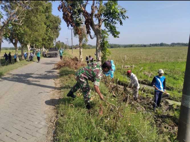 Babinsa Bluluk Bantu Warga Perlancar Saluran Irigasi