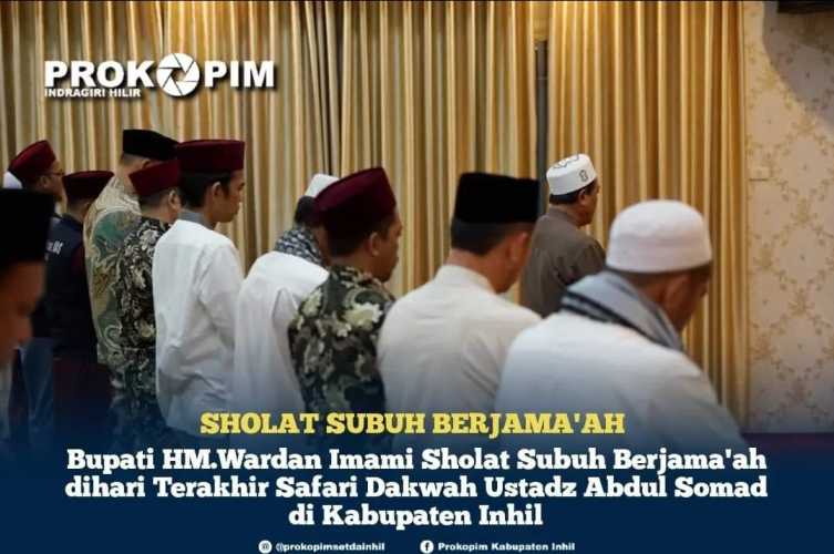 Sholat subuh ini yang dipimpin lansung Bupati HM.Wardan bersama beberapa Pejabat, Alim ulama Kabupaten Indragiri Hilir dengan diisi tausiah atau kajian subuh bersama Da'i Kondang Ustadz Abdul Somad.