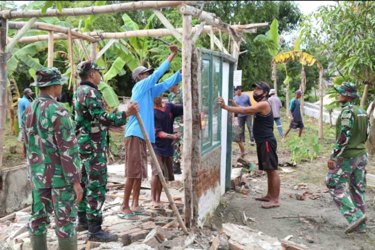 Bahkan, pihak Koramil telah menerjukan beberapa pesonel untuk mempercepat bedah rumah milik Sanipah (67) warga Desa Sendangrejo, Kecamatan Lamongan. Rumah milik Sanipah, diketahui tak layak untuk dihuni dan perlu dilakukan rehab.