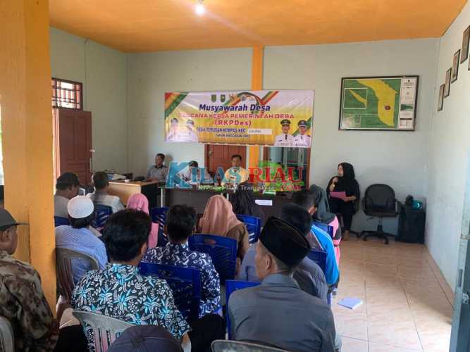 KILASRIAU.com - Pemerintah Desa (Pemdes) Desa Terusan Kempas, kecamatan Gaung, Kabupaten Indragiri Hilir (Inhil) menyelenggarakan Musyawarah Desa Rencana Kerja Pemerintah Desa (RKPDes) tahun anggaran 2022, di kantor Desa Terusan Kempas, Kamis (18/8/22).