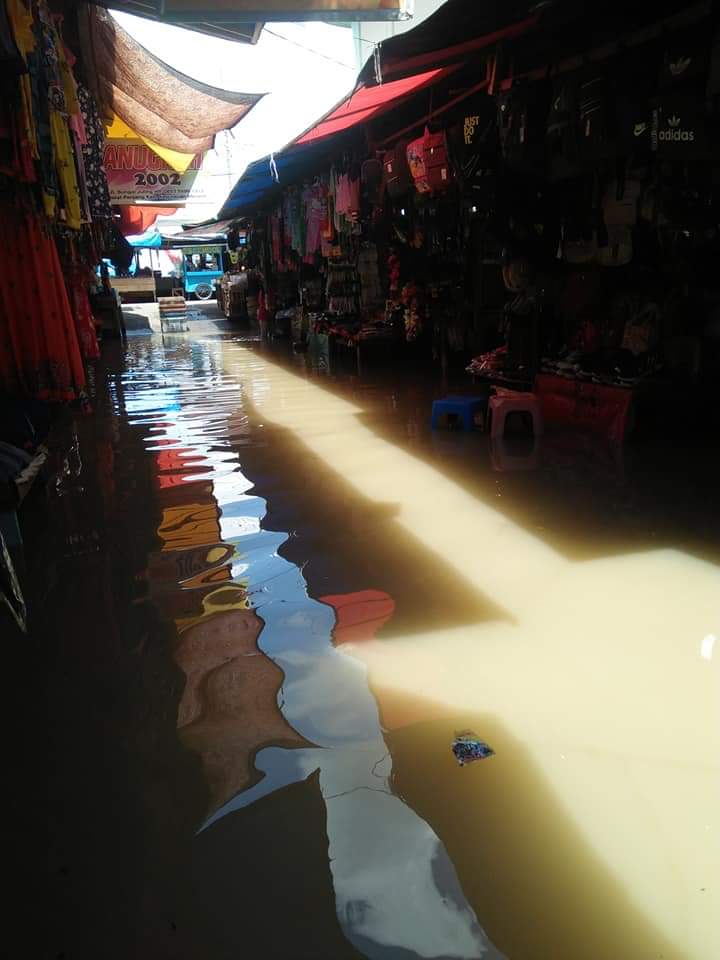 Pantauan Awak Media, Senin (26/November /2018) terlihat Air Pasang menggenangi lapak dan ruko pedangang, dengan ketinggian air bervariasi, mulai dari 30 cm hingga, mencapai 40 cm meter.