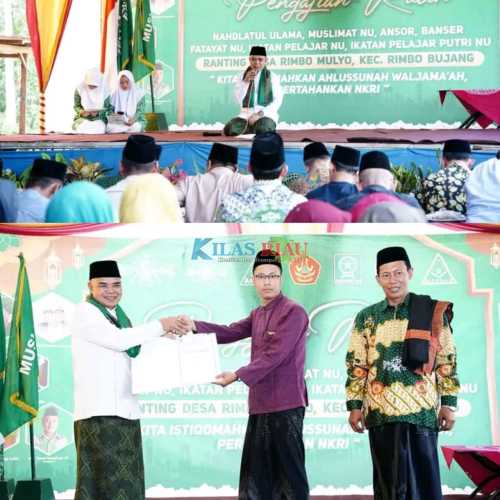 Penyerahan tersebut dilakukan di Kegiatan Pengajian Rutin Nahdlatul Ulama, Muslimat NU, Ansor, Banser, Fatayat NU, Ikatan Pelajar NU, Ikatan Pelajar Putri NU Ranting Desa.