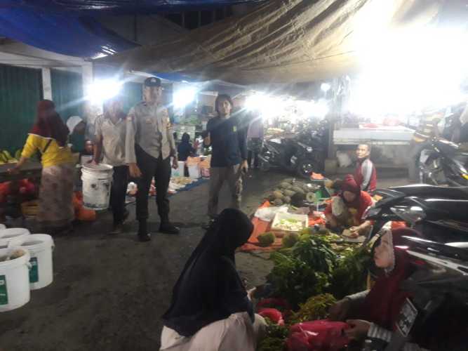 Bhabinkamtibmas Kelurahan Tembilahan Kota Bersama Petugas Terantib Laksanakan Sambang di Pasar Subuh