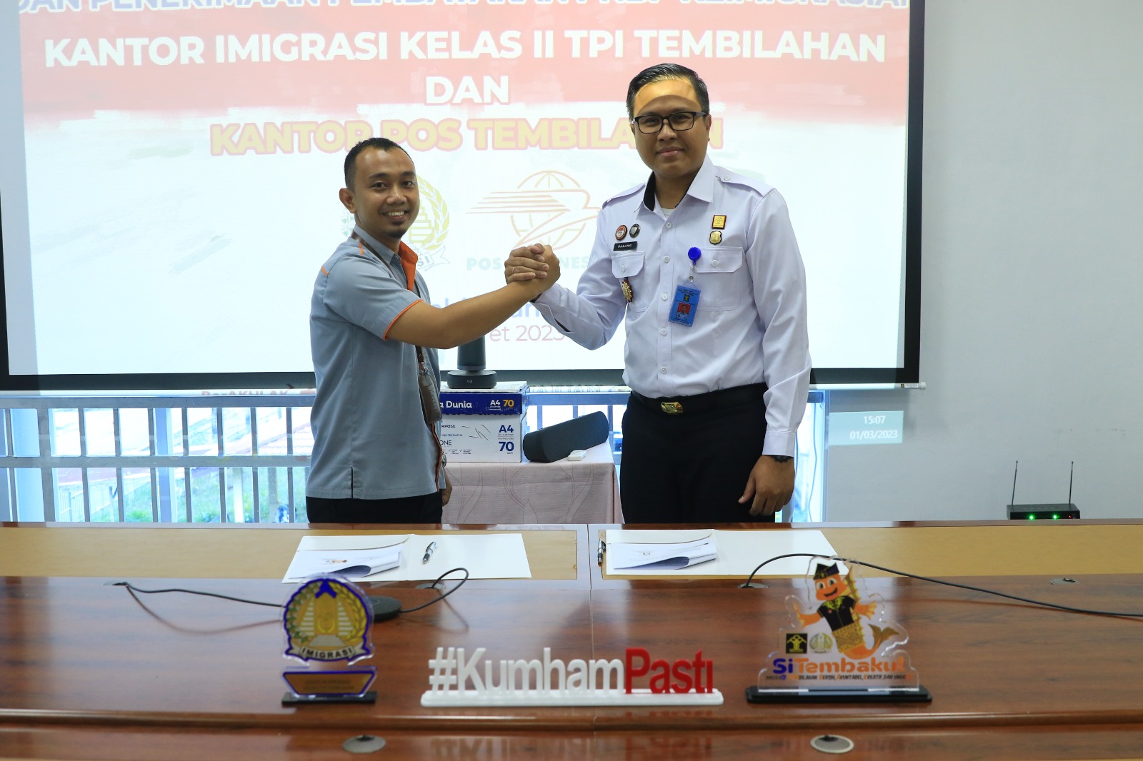 Kemudahan layanan paspor kali ini diberikan melalui kolaborasi dengan Kantor Pos Tembilahan, yaitu layanan pengiriman paspor ke alamat pemohon, dan layanan pembayaran PNBP Keimigrasian melalui Pos Tembilahan.