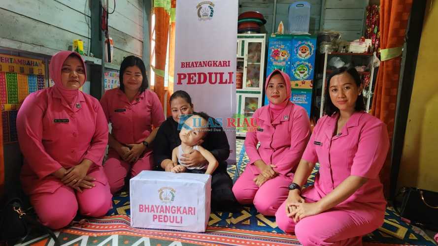 Bhayangkari Ranting Kuala Cenaku Santuni Anak Penderita Hidrosefalus