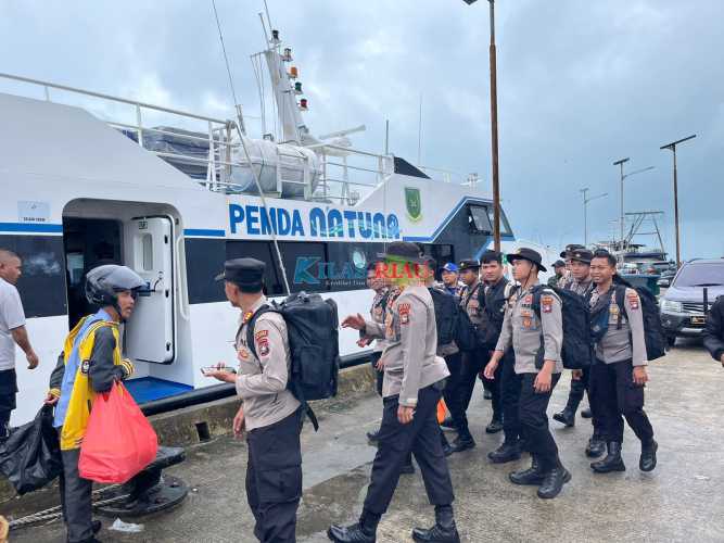 Kapolres Natuna melalui Kasi Humas Polres Natuna Aipda David Arviad menyampaikan, Kapolres Natuna AKBP Nanang Budi Santosa, S.I.K di dampingi Kabag Ops AKP Muryanto, Kasat Intel Ipda Iman Prayetno, SM, Kasat Binmas AKP Maskat beserta 32 personil pada pukul 16.00 Wib berangkat dari pelabuhan Penagi menuju Pulau Serasan menggunakan Kapal Mv. Indra Perkasa dan Kapal Basarnas Natuna.