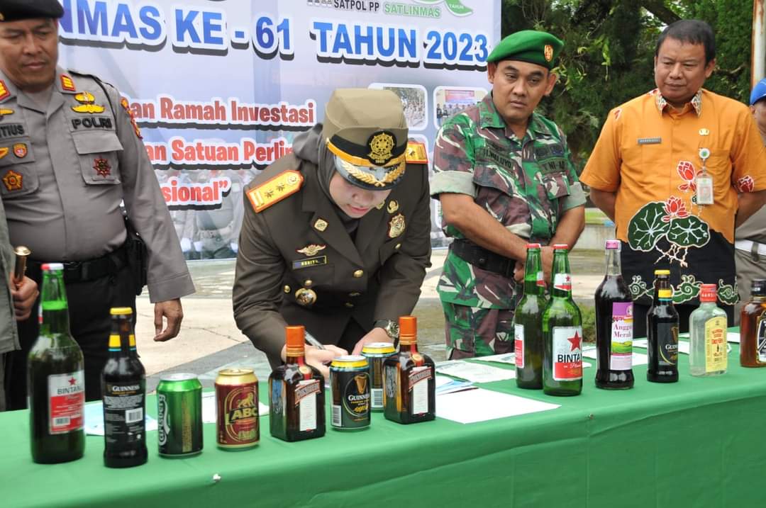 Pada Apel ini, Bupati melakukan pemusnahan barang bukti hasil pelanggaran Perda dan Perkada tahun 2019 - 2022, berupa ratusan botol minuman keras dan baliho serta iklan dinding minuman keras.
