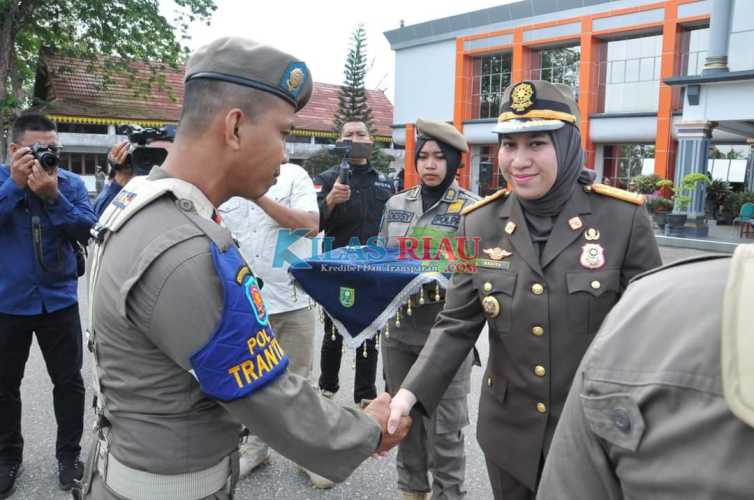 Sebelum menyampaikan amanatnya, Bupati Inhu melakukan pemasangan selempang Satpol PP Pariwisata dan Satpol PP Ketentraman dan Ketertiban Umum secara simbolis kepada perwakilan.
