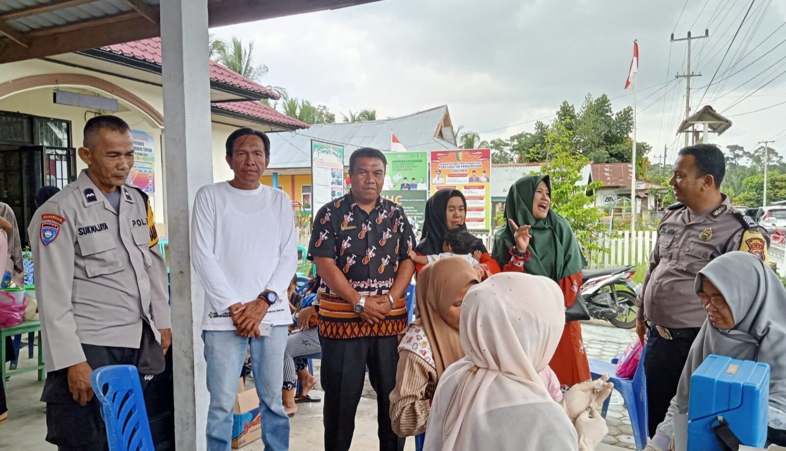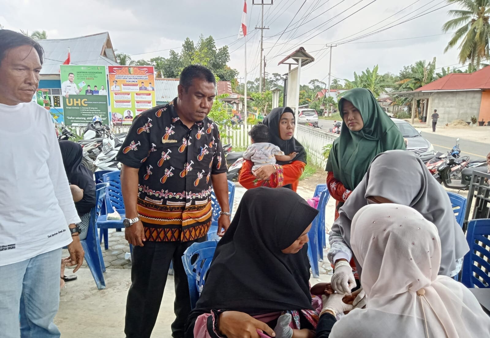 Dalam giat imunisasi tersebut, terlihat Kepala Puskesmas, Toni Afrison, dan Isteri Camat Kuantan Tengah, Sri Wati, S.STP, hadir dalam rangka kunjungan ke Posyandu Manggis Mandiri Terpadu. Juga terlihat Ketua TPKK desa, Lindawati, Babhinkamtibmas, Aggota BPD, Kader dan perangkat desa lainnya.