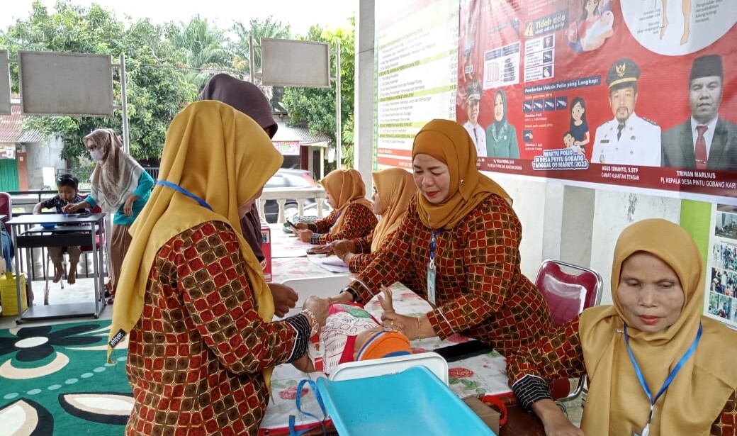 Hal ini dilakukan oleh Pj Kades Pintu Gobang setelah Pemerintah mencanangkan agar masyarakat segera membawa anak untuk mendapatkan tetes polio dan suntik polio. Crash program pemberian imunisasi tambahan 1 dosis tetes polio kepada anak berusia 0-59 bulan dan 1 dosis suntik polio diberikan kepada anak usia 4-59 bulan.