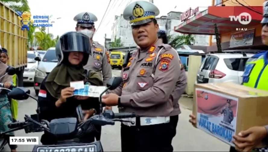 "Kegiatan Jum'at Berkah kali ini menyasar pengguna jalan yang sudah tertib dalam berlalu lintas," jelasnya.