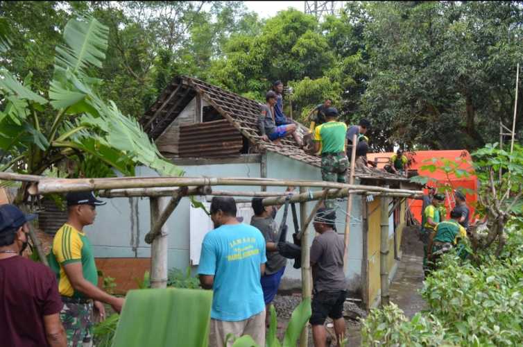 Perbaikan rumah milik Munatin itu, dilakukan oleh prajurit Yonarmed 12/Kostrad. Minggu (12/03/2023).