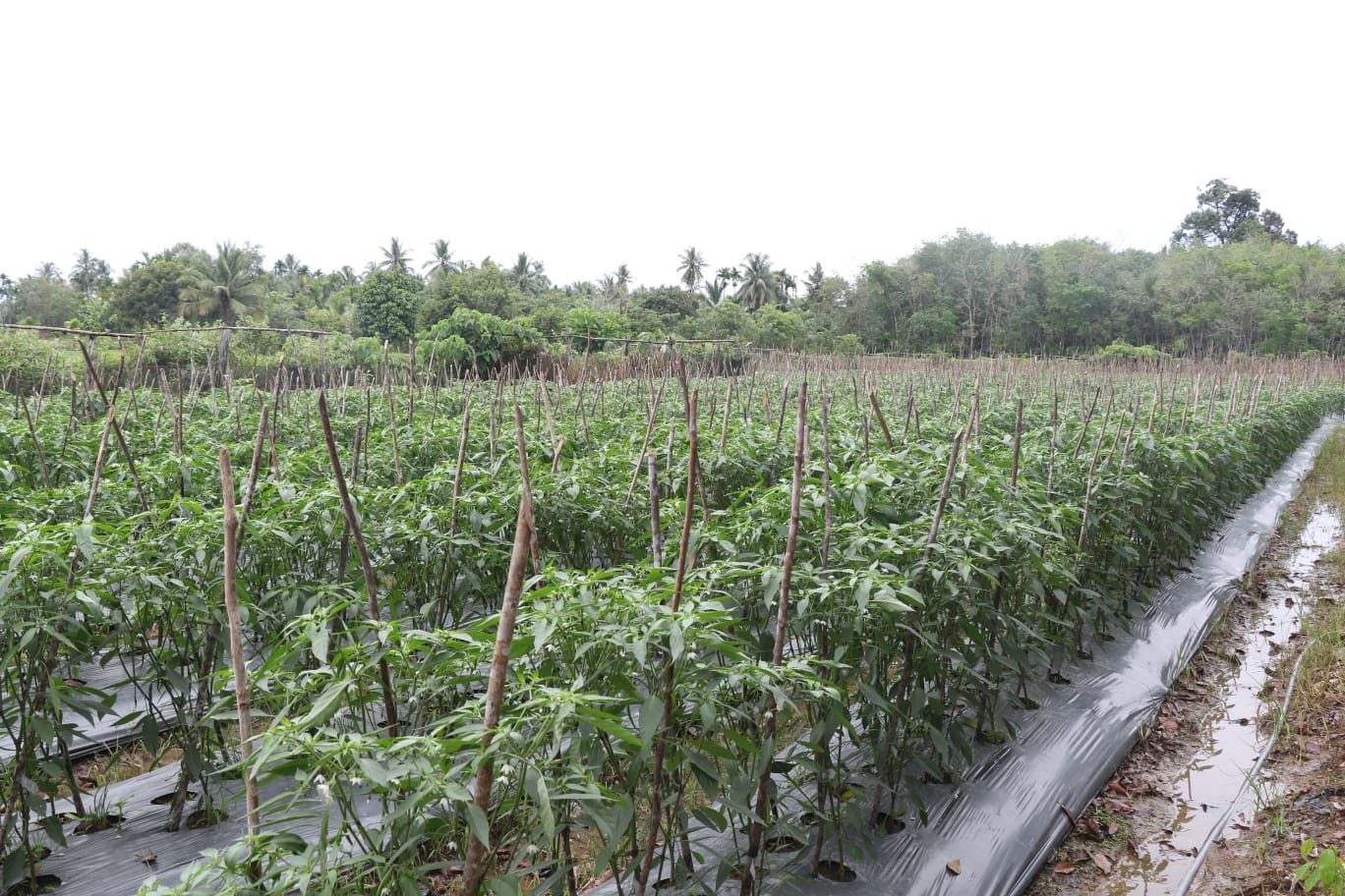Melalui BUMDes dan BPD Desa Seberang Gunung, di atas lahan desa Seberang Gunung sebesar seperempat hektar ditanami dan siap panen 250 batang cabai merah.