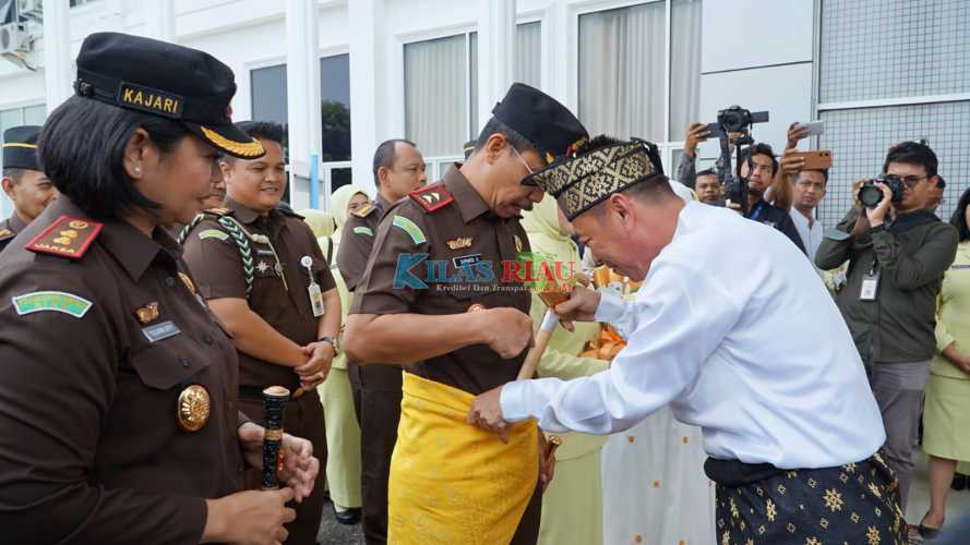 Dengan menggunakan jalur darat, Kajati bersama rombongan tiba di Kantor Kejari Rohil sekitar pukul 11. 00 wib dan disambut secara adat oleh Bupati Rohil Afrizal Sintong SIP bersama ketua PKK Sanimar Afrizal, Ketua DPRD Rohil Maston, Kajari Rohil Yuliarni Appy SH MH, Kapolres Rohil AKBP Andrian Pramudianto, LAM Rohil dan berbagai unsur lainnya. Usai disambut secara adat, kemudian dilanjutkan dengan tepuk tepung tawar.