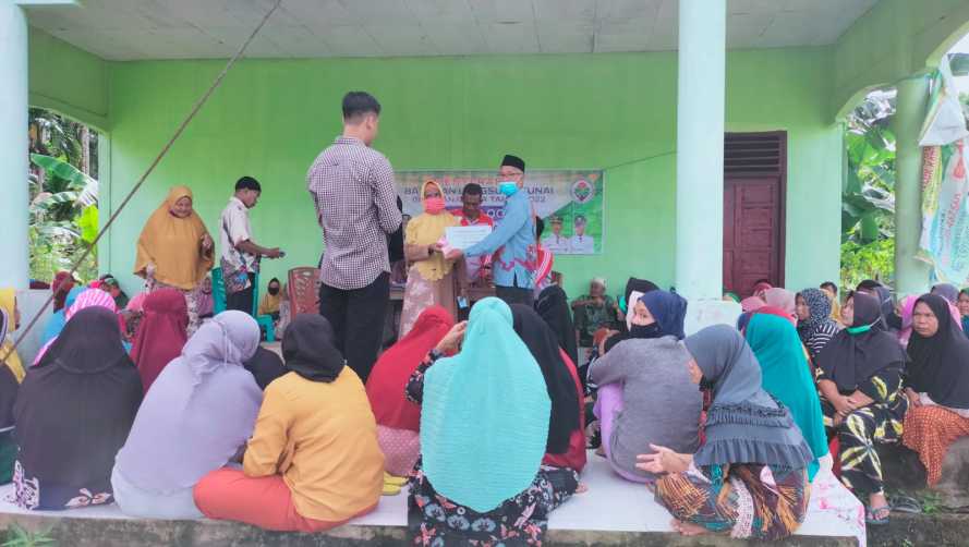 Kilasriau.com - Pemerintah desa (Pemdes) Teluk Kabung, kecamatan Gaung, kabupaten Inhil menyalurkan Bantuan Langsung Tunai Dana Desa (BLT-DD kepada keluarga penerima manfaat (KPM) di Balai Kantor Desa, Sabtu (30/4/22)