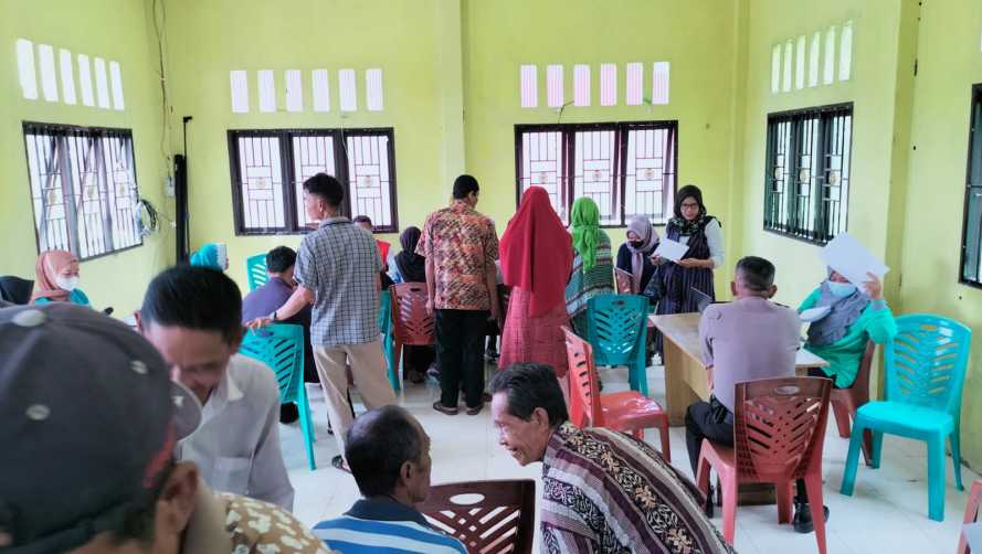 Pelaksanaan Vaksinasi ini dipusatkan di balai kantor desa dan ini terlihat warga sangat antusias dalam mengikut kegiatan tersebut.