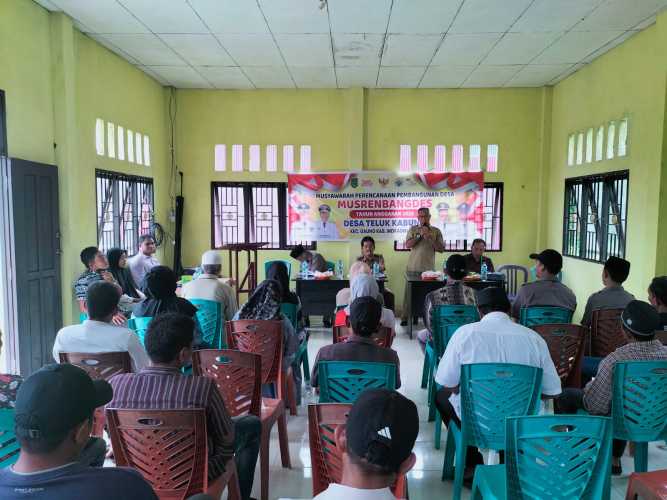 Kilasriau.com - Pemerintah desa (Pemdes) Teluk Kabung kecamatan Gaung, kabupaten Indragiri Hilir (Inhil) melaksanakan musyawarah perencanaan pembangunan desa (Musrenbangdes) 2024 di Balai Desa, Senin (24/01/22).