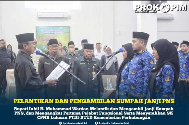 Kilasriau.com - Pemerintah Kabupaten (Pemkab) Indragiri Hilir (Inhil) menggelar Pelantikan dan Pengambilan Sumpah Janji Pegawai Negeri Sipil (PNS), Pengangkatan Pertama Pejabat Fungsional serta Penyerahan SK CPNS Lulusan PTDI-STTD Kementerian Perhubungan di Lingkungan Pemerintah Kabupaten Inhil, Rabu (15/03/2023) di salah satu Hotel yang ada di Tembilahan.