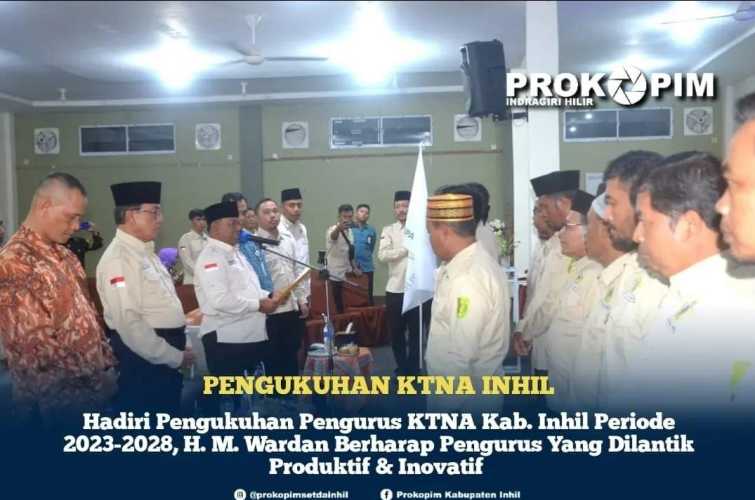 Bupati Indragiri Hilir H. M. Wardan yang juga menjabat sebagai Dewan Pembina KTNA Kab. Inhil dan Ketua HKTI Prov. Riau menghadiri pelantikan / pengukuhan Kelompok Kontak Tani Nelayan Andalan (KTNA) Kab. Inhil untuk periode 2023 - 2028, Kamis (16/03/2023), malam.