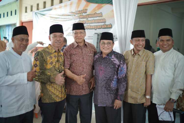 Pada kesempatan itu, Bupati Rohil didampingi tokoh masyarakat lainnya secara simbolis membagikan paket sembako berupa beras, minyak goreng, gula dan teh kepada masyarakat Rohil Pekanbaru yang kurang mampu sebanyak 155 KK.