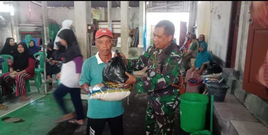 Selain melibatkan aparat Babinsa, bagi-bagi sembako itu juga turut melibatkan aparat Bhabinkamtibmas dan perangkat Desa setempat.
