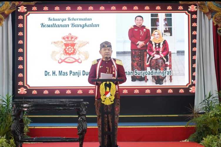“Karena, dengan dianugerahkannya gelar Keluarga Kehormatan Kesultanan Bangkalan, bapak Jenderal TNI Dudung Abdurachman bukan hanya menjadi bagian dari keluarga besar Kesultanan asja. Tapi, juga menjadi Keluarga Besar warga Bangkalan,” ucapnya.**