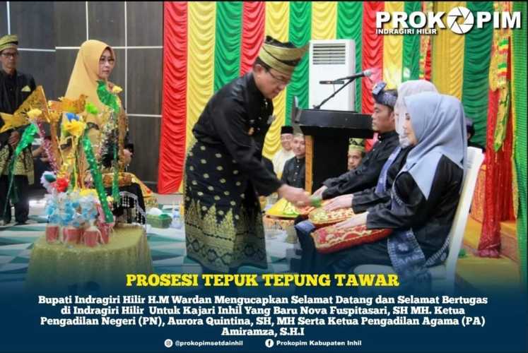 Prosesi tepuk tepung tawar yang digelar di Gedung Engku Kelana Tembilahan ini ditujukan untuk menyambut kedatangan Kepala Kejaksaan Negeri Inhil, Ketua Pengadilan Negeri dan ketua Pengadilan Agama Inhil yang beberapa waktu lalu telah melaksanakan serah terima jabatan.