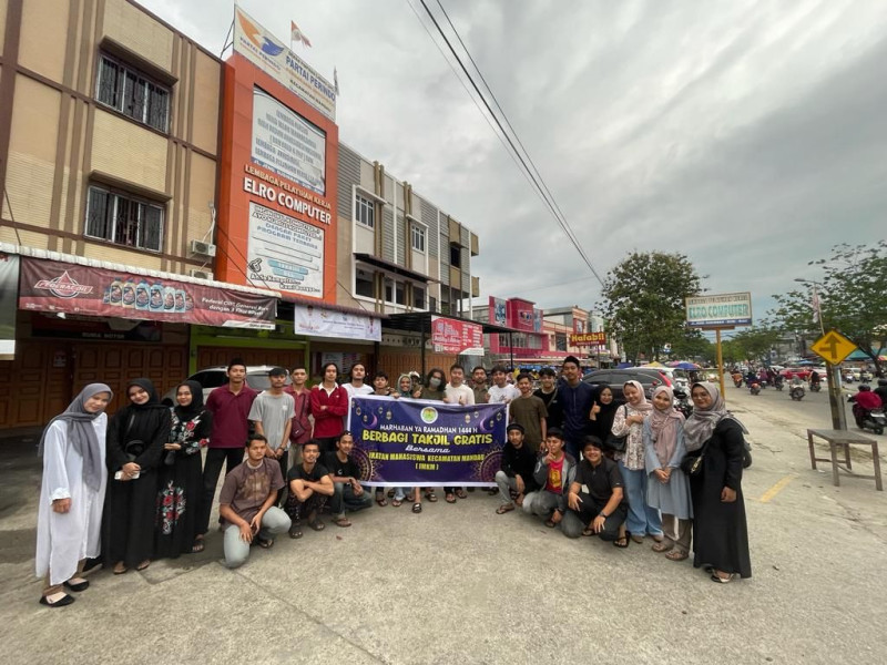 Kilasriau.com - Ikatan Mahasiswa Kecamatan Mandau menggelar pembagian takjil kepada warga yang melintasi jalan Desa Harapan, Kecamatan Mandau, Sabtu, 25 Maret 2023 kemarin.