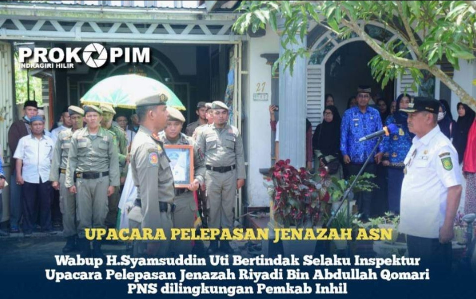Dalam sambutannya sebagai Inspektur upacara Wabup H.Syamsuddin Uti atas nama Pemkab inhil menyampaikan duka cita yang mendalam atas kepergian Almarhum Riyadi bin Abdullah Qomari dan kepada keluarga yang ditinggal semoga diberikan kesabaran dan ketabahan.